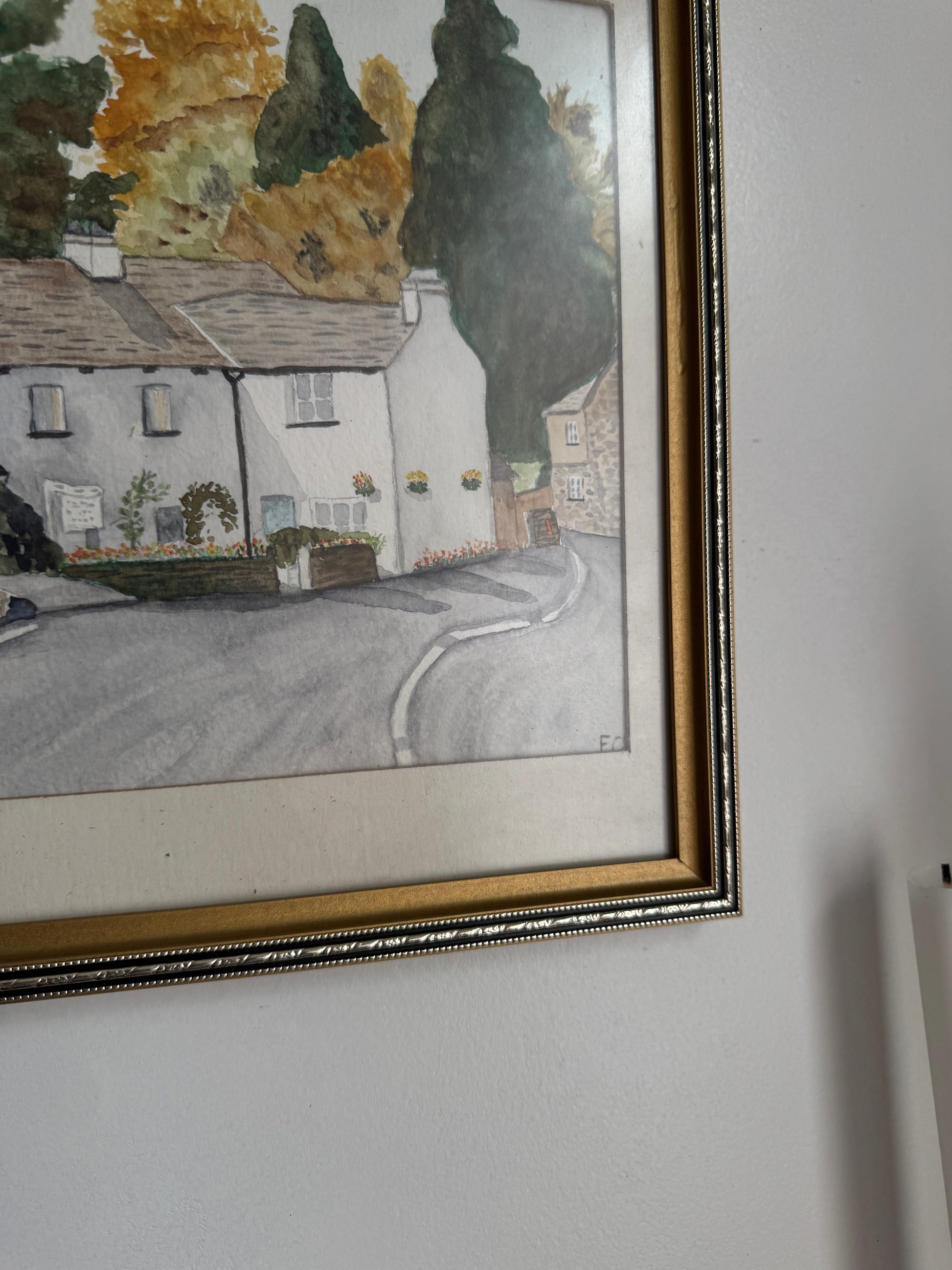 Vintage Signed Watercolour Artwork in Slim Wooden Frame