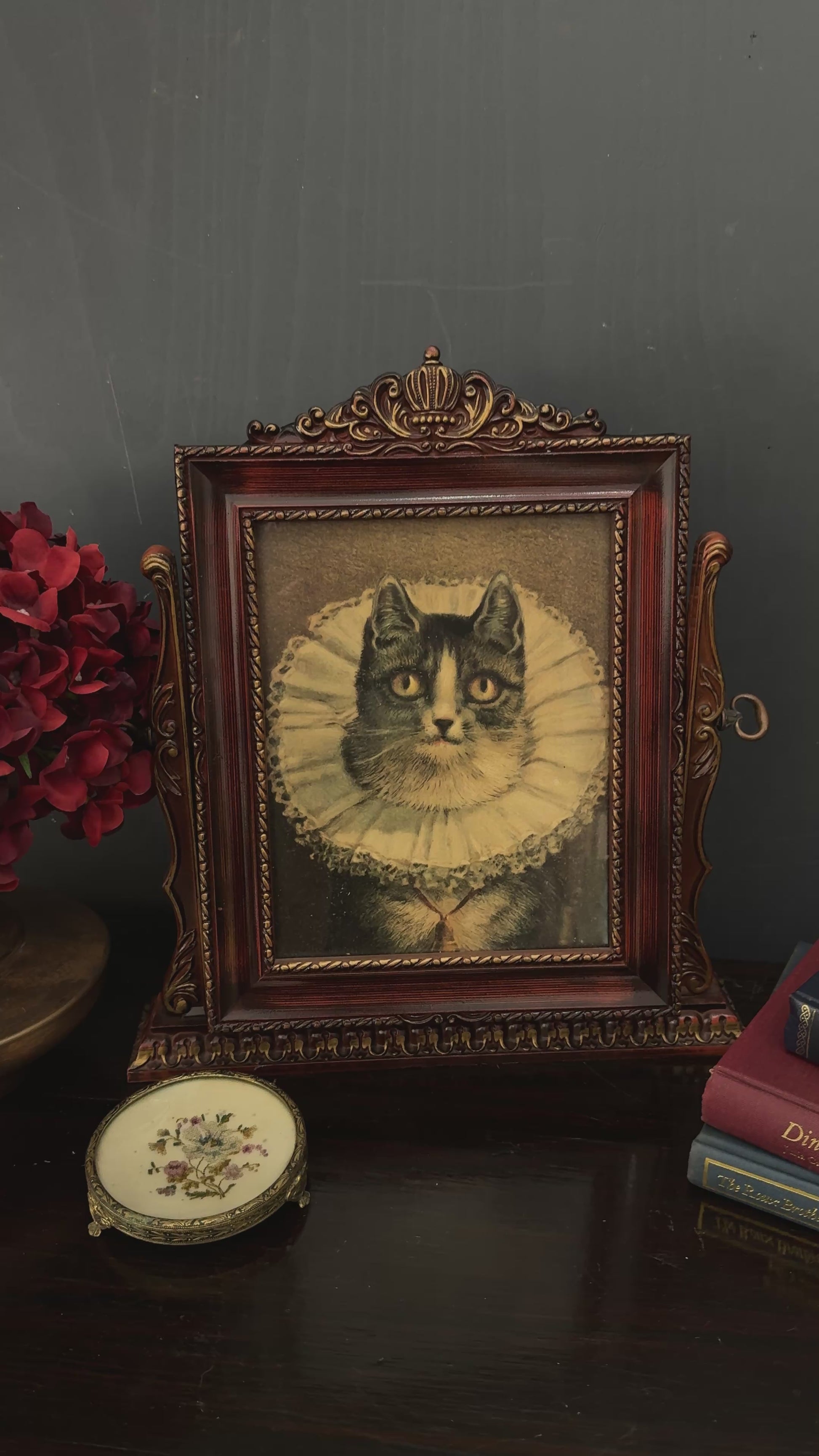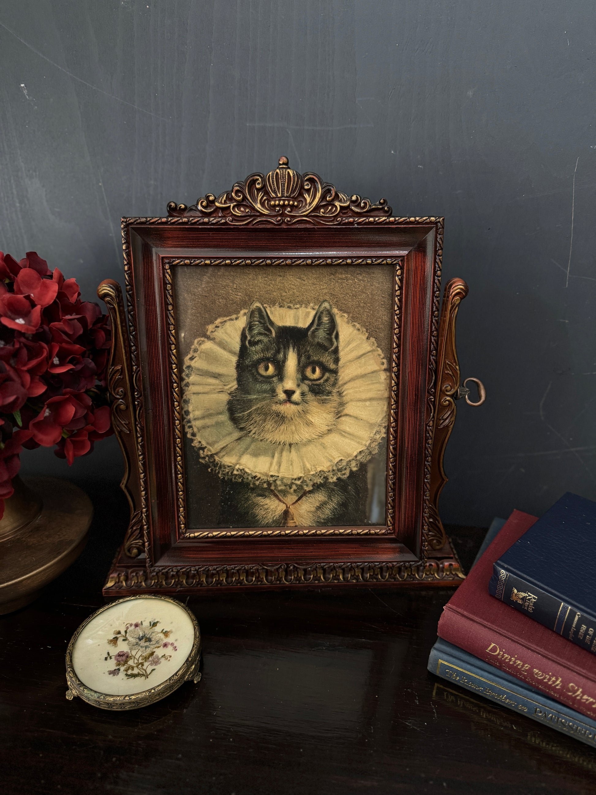 Kitchen Companion – Vintage Oil Painting of Cat in Gilt Frame